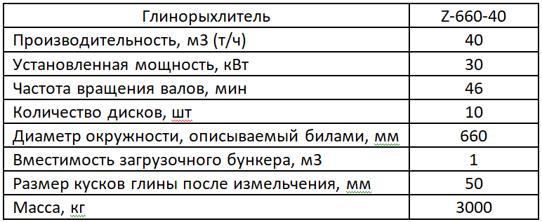 Глинорыхлитель Z-660-40, предназначен для измельчения крупных и мерзлых комьев глины с пределом прочности кусков на сжатие не более 1,7 Мпа и размером не более 800 мм. Устанавливается в технологических линиях по производству бентонита и строительной керамики. Конструкция и компоновка сборочных единиц и механизмов глинорыхлителя обеспечивает удобный и безопасный доступ при ремонте, техническом обслуживании и монтаже.