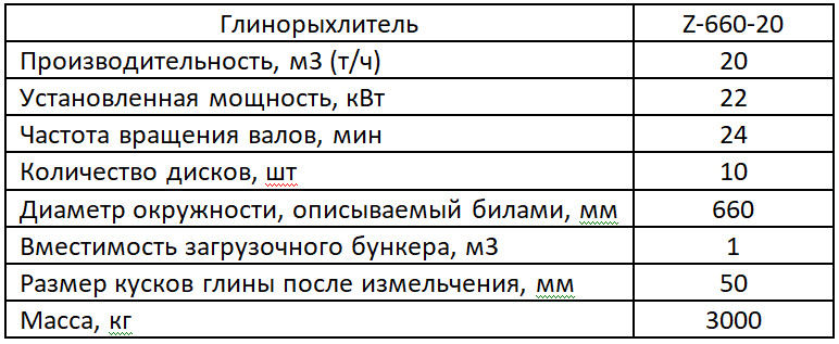 Глинорыхлитель Z-660-20, предназначен для измельчения крупных и мерзлых комьев глины с пределом прочности кусков на сжатие не более 1,7 Мпа и размером не более 800 мм. Устанавливается в технологических линиях по производству бентонита и строительной керамики. Конструкция и компоновка сборочных единиц и механизмов глинорыхлителя обеспечивает удобный и безопасный доступ при ремонте, техническом обслуживании и монтаже.